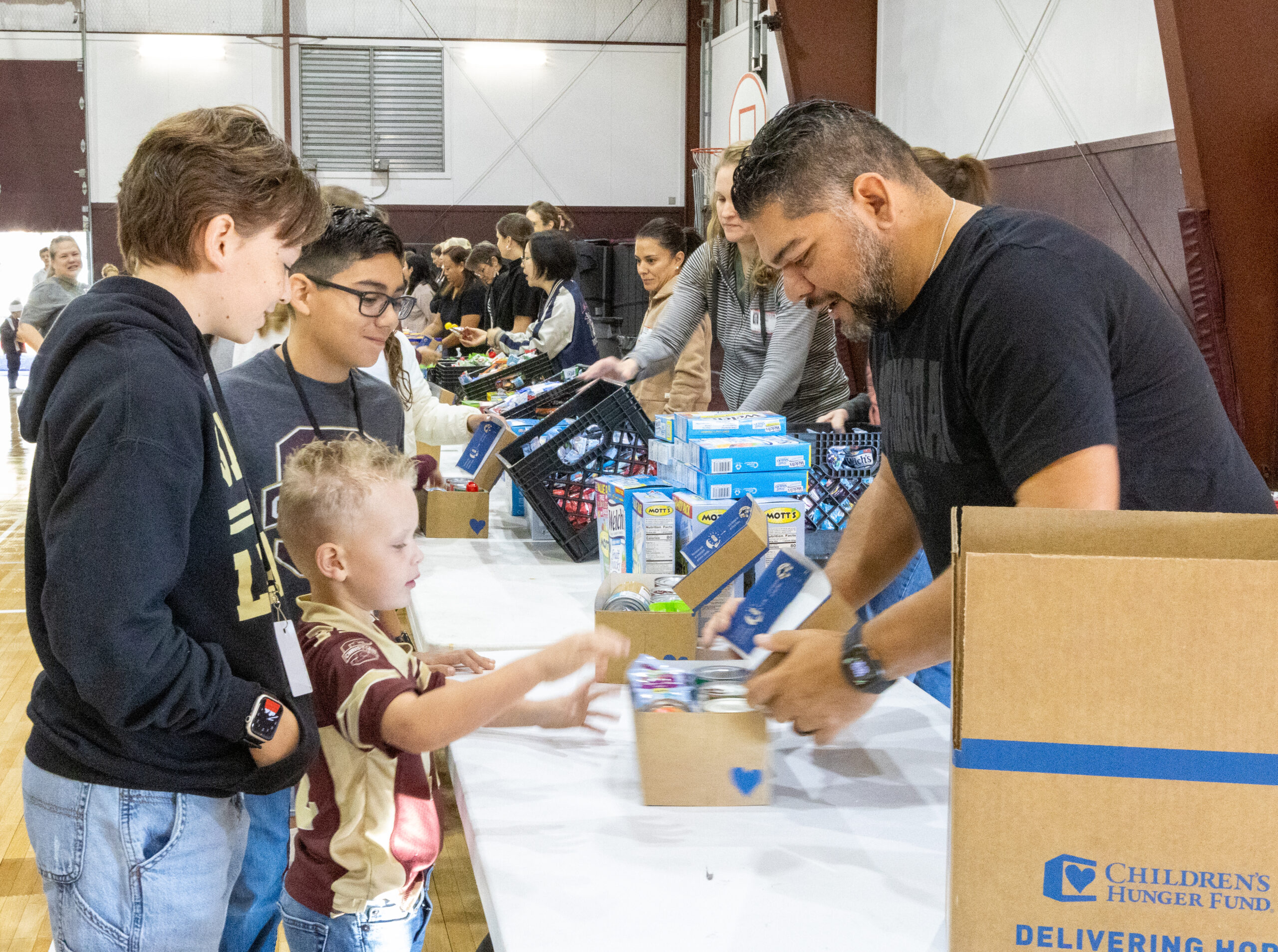 Spiritual Growth & Service: Beyond weekly chapel, students apply biblical truths through service, such as partnering with high schoolers to pack boxes for the school’s Thanksgiving food drive.